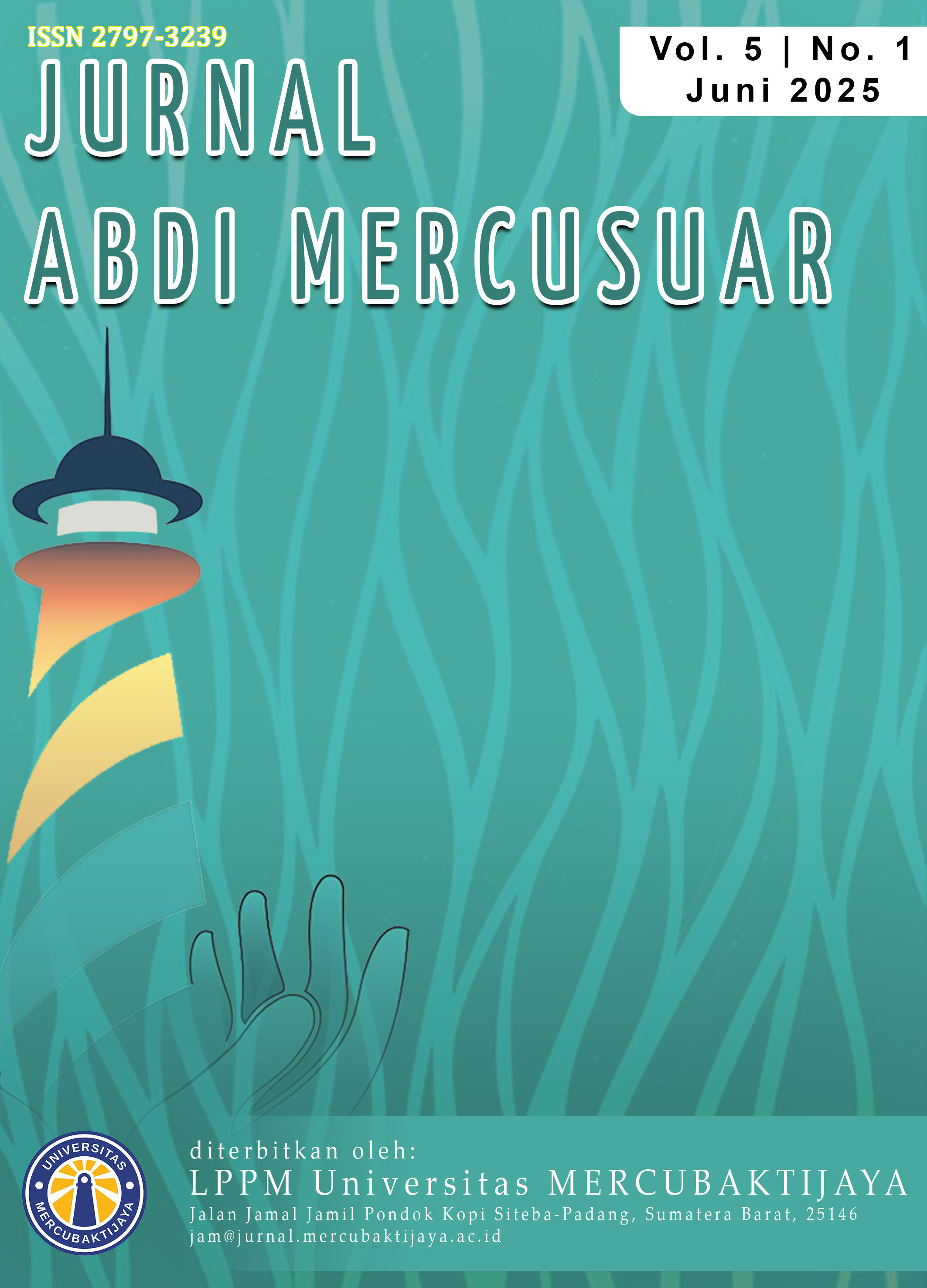 ABDI MERCUSUAR Journal (JAM) contains various activities from diverse groups of people in handling and managing the various potentials, obstacles, challenges and problems that exists in the society. Implementation of service activities also involve the participation of the community and partners. Service activities are organized into an activity aimed at improving the welfare of society.